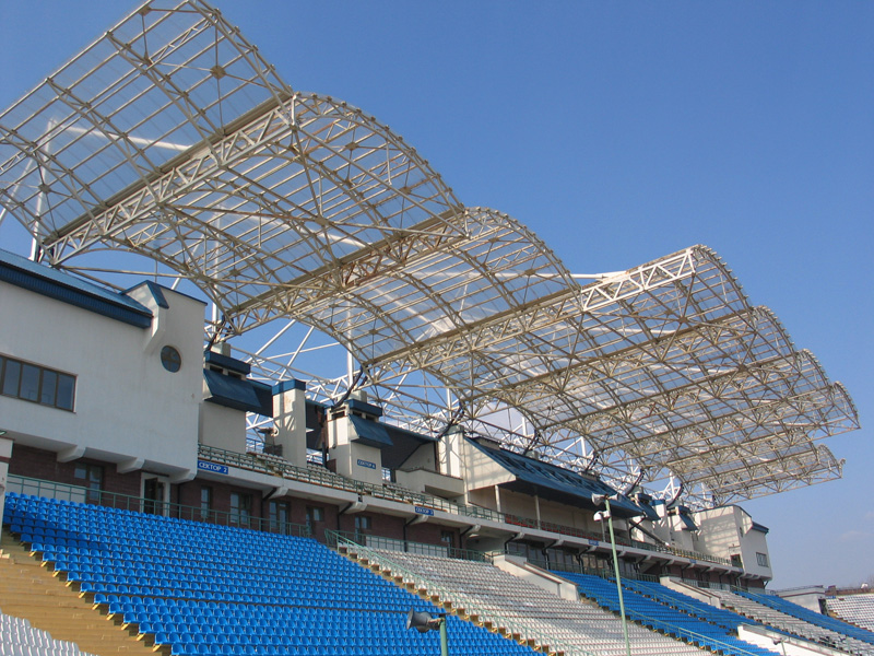 Устанавливаются на открытых стадионах и площадках. Навес производится из поликарбоната, что увеличивает его срок службы.